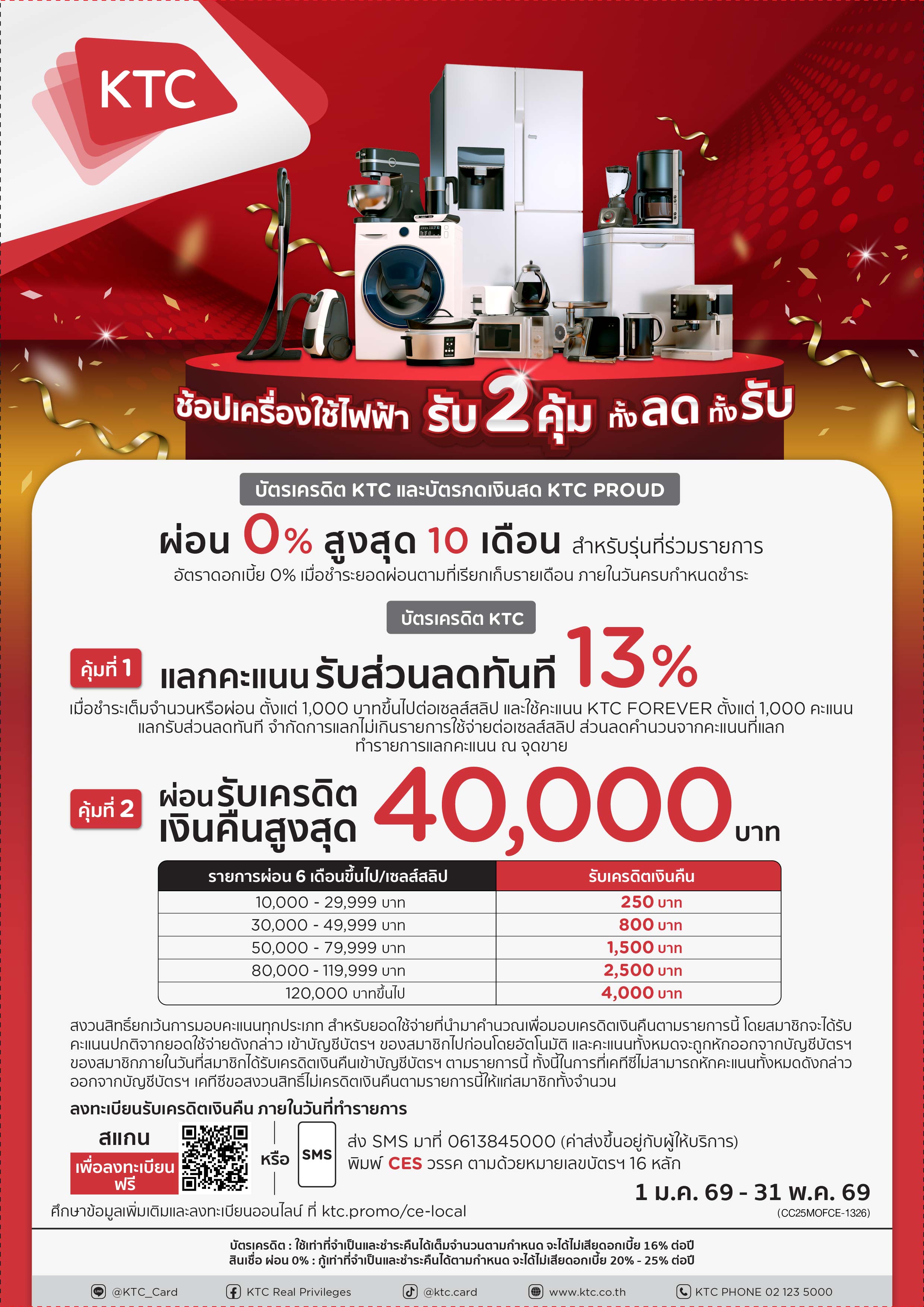 โปรโมชั่นช้อปเครื่องใช้ไฟฟ้าสุดคุ้ม ทั้งรับ ทั้งผ่อน ที่ร้านเครื่องใช้ไฟฟ้าที่ร่วมรายการ ทั่วประเทศ กับบัตรเครดิต KTC